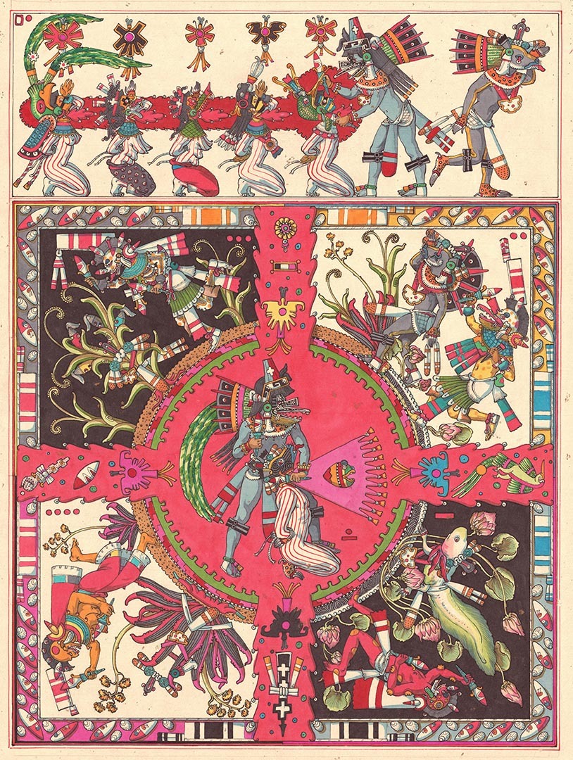‘Aztec Thought and Culture: A Study of the Ancient Nahuatl Mind’ by Miguel Leon-Portilla is a circa 1990 attempt to extrapolate the metaphysics of Nahuatl-dominated Mesoamerica based off of what surviving sources are available. Much was lost, destroyed, and hidden in the Spanish conquest, not so much due to the war itself as much as the subsequent invasions of priests and missionaries who insisted on demolishing, ISIS-style, as much of previously existing culture as they could. This has left us with imperfect records to work with, yet the Mesoamericans were an incredibly literate people and some had the foresight to safeguard many things until later and less fanatical eras.